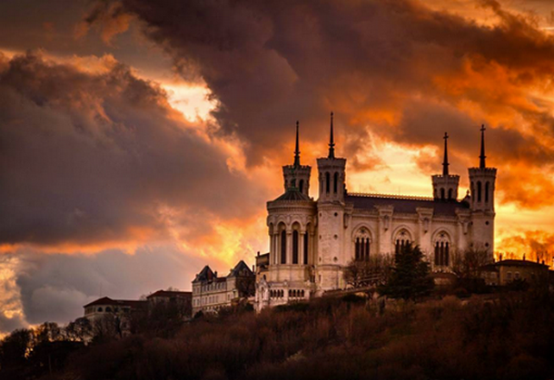 Basilique Notre Dame de Fourvière au couchant....