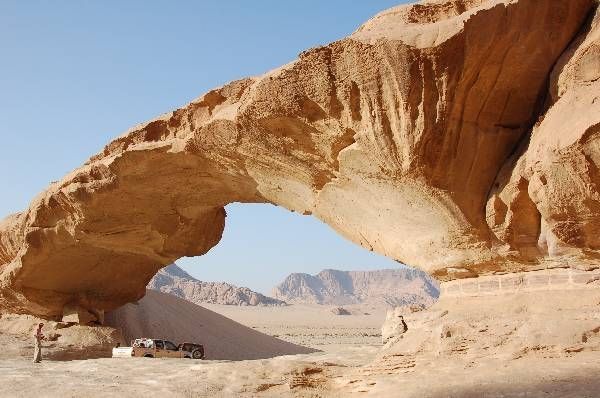 Le Wadi Rum ou Wadi Ramm est un paysage désertique comportant des canyons, des arches naturelles, des falaises et des grottes, situé au sud de l'Arabah en Jordanie.